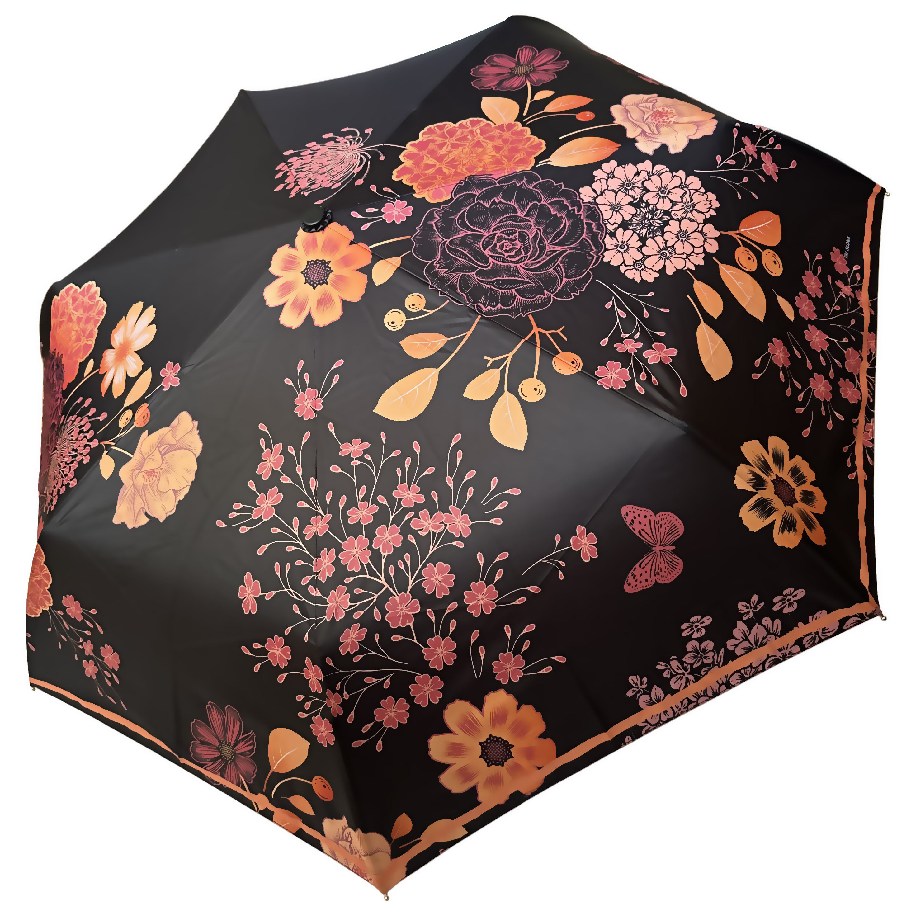 Складной женский зонт торговой марки Три Слона (Tri Slona). Основной цвет купола черный.