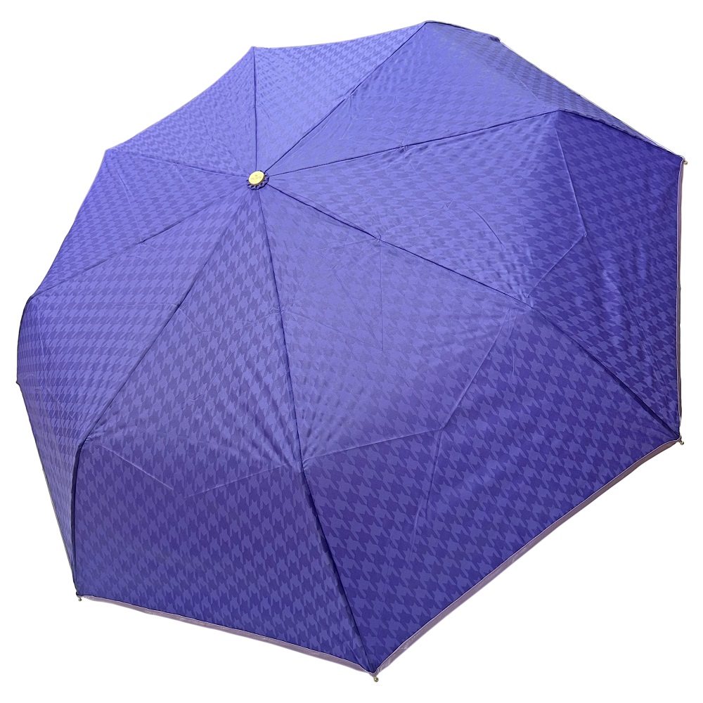 Складной женский зонт торговой марки Три Слона (Tri Slona). Узор гусиная лапка - прозрачная шелкография, с тесьмой по краю купола.
